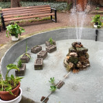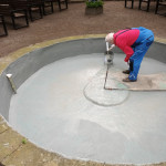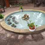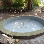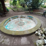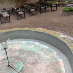 Nach jahrelangem tristen Dasein hat sich das Klostergarten-Team den maroden Teich vor der Mariengrotte vorgenommen. Das Becken war schon lange undicht. Das Wasser versickerte durch den maroden Betonbelag im Becken. Konrad Garbs hat in mühevoller Arbeit zunächst das Becken geleert, gesäubert und dann den gerissenen Wand- und Bodenbelag ausgebessert. Am Schluss wurde ein wasserdichter Schlussanstrich auf Kunststoffbasis aufgebracht. Nun kann das Wasserspiel wieder im frisch gefüllten Wasserbecken die Besucher erfreuen. Die Bepflanzung wurde ebenfalls neu eingesetzt. Der Klostergarten-Schäferhund Kessy hatte nach der Befüllung mit neuem Wasser sofort eine neue Quelle zum Trinken entdeckt.